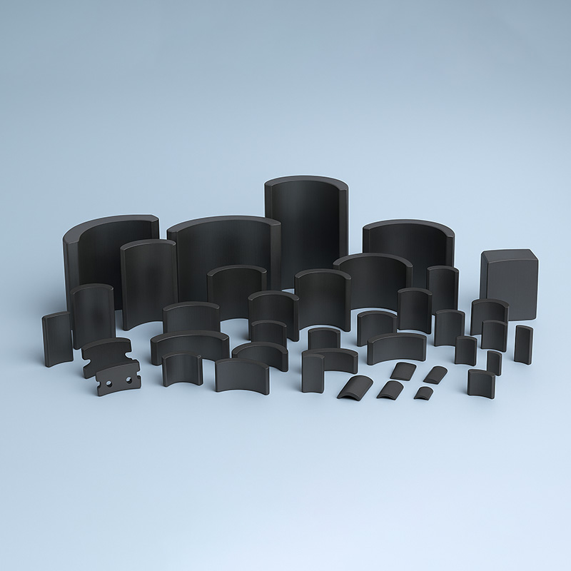 Ferrite segment magnets provide moderate magnetic force and are extremely stable under thermal and chemical stress. Their shape is specifically designed for radial magnetic applications, offering efficient flux distribution in motor assemblies.